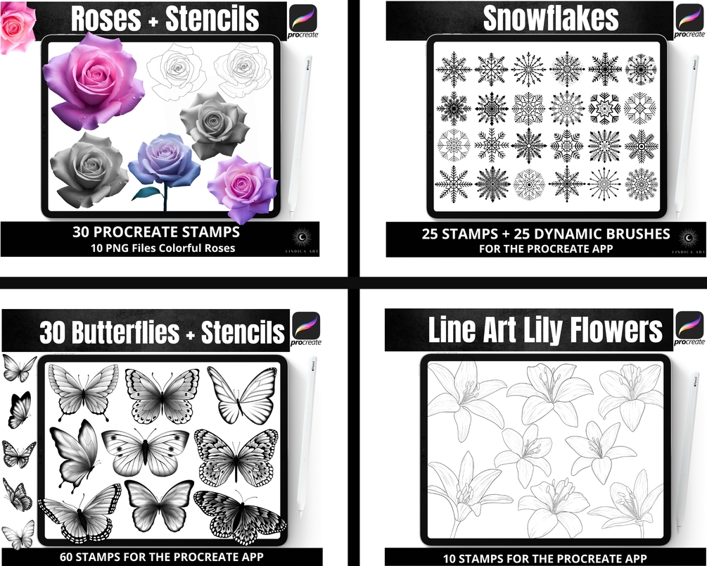 Whether you're a professional Tattoo Artist, Illustrator, Digital Designer, Procreate enthusiast or looking for inspiration, these stamps offer professional quality with endless possibilities. Save time and focus on perfecting your art with these ready-to-use Procreate stamp brushes!