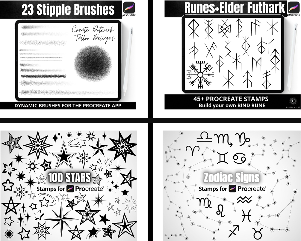 Whether you're a professional Tattoo Artist, Illustrator, Digital Designer, Procreate enthusiast or looking for inspiration, these stamps offer professional quality with endless possibilities. Save time and focus on perfecting your art with these ready-to-use Procreate stamp brushes!