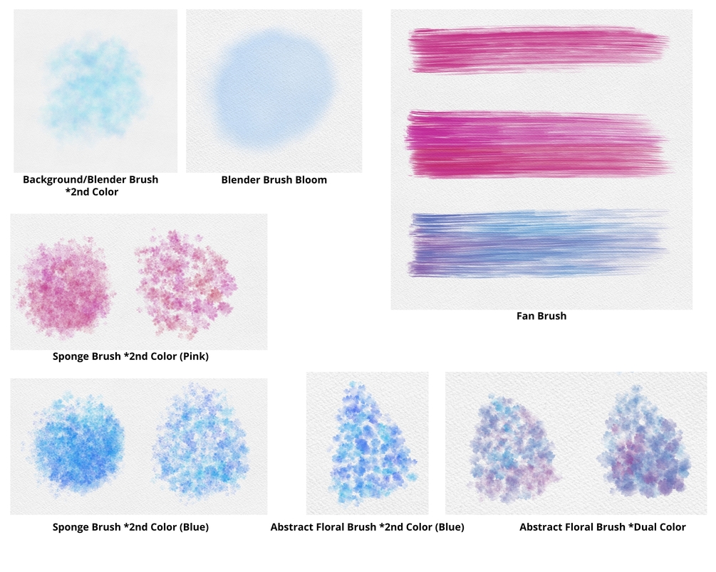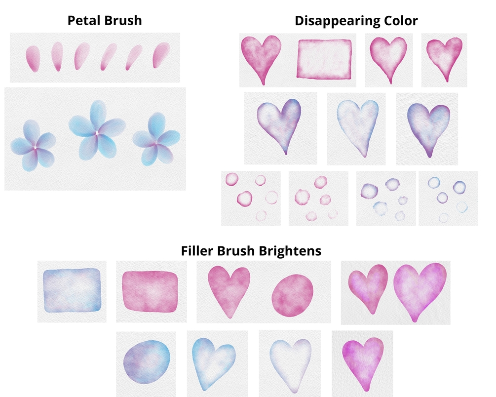 The special effect brushes and colors are explained in the PDF but as with real watercolor painting, play around and have fun creating your digital artwork!
