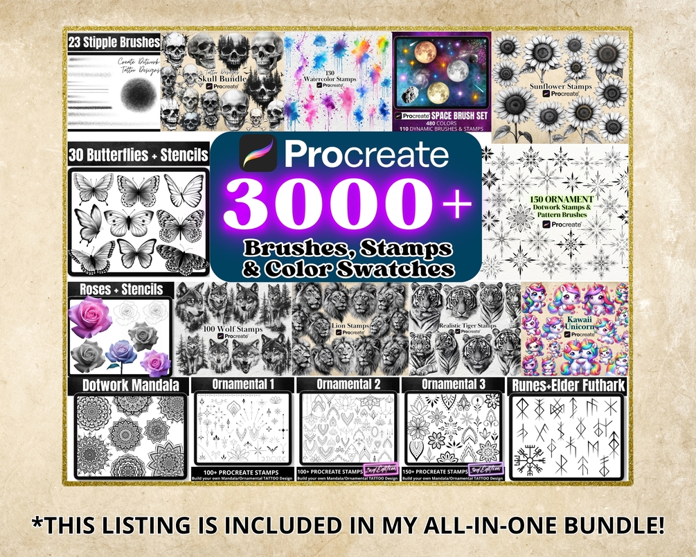 100+ Procreate Ornamental Mandala Stamp Brushes, Create your own Tattoo Design